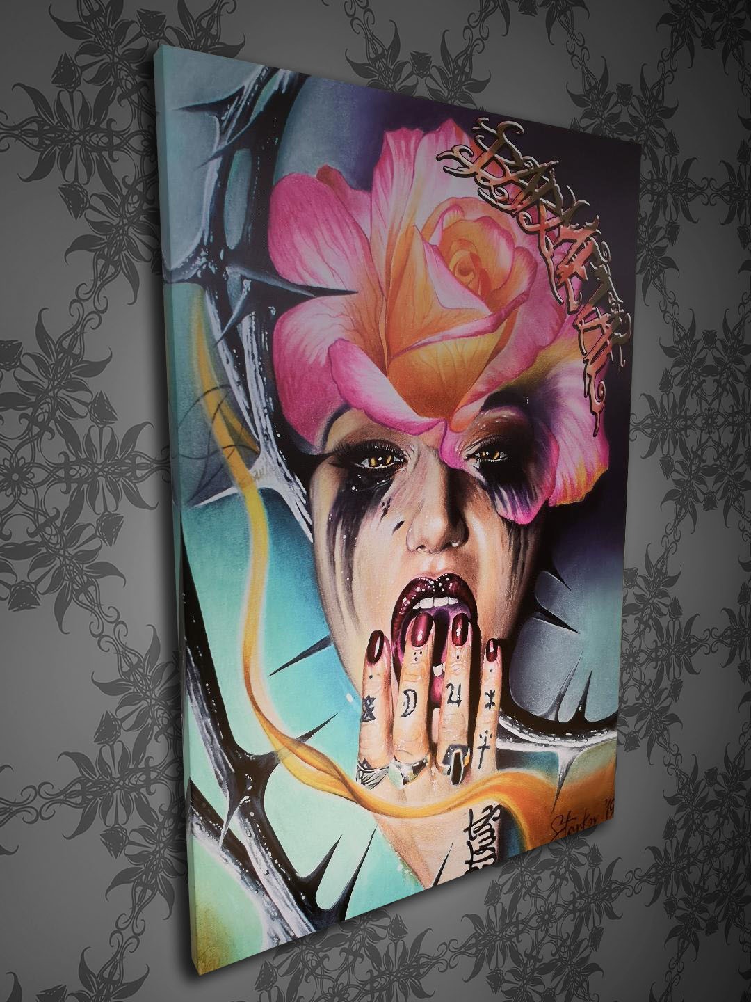 Barmetal Leinwand 90 CM x 60 CM Shattered Chicana Polka Trash Art