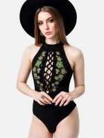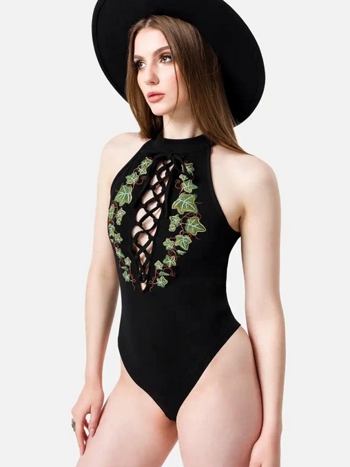 - Eng anliegender Bodysuit mit Halter/Kragen