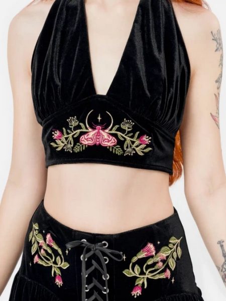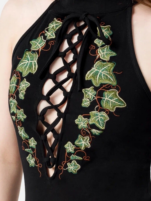 - Efeu Stickerei entlang Ausschnitt
